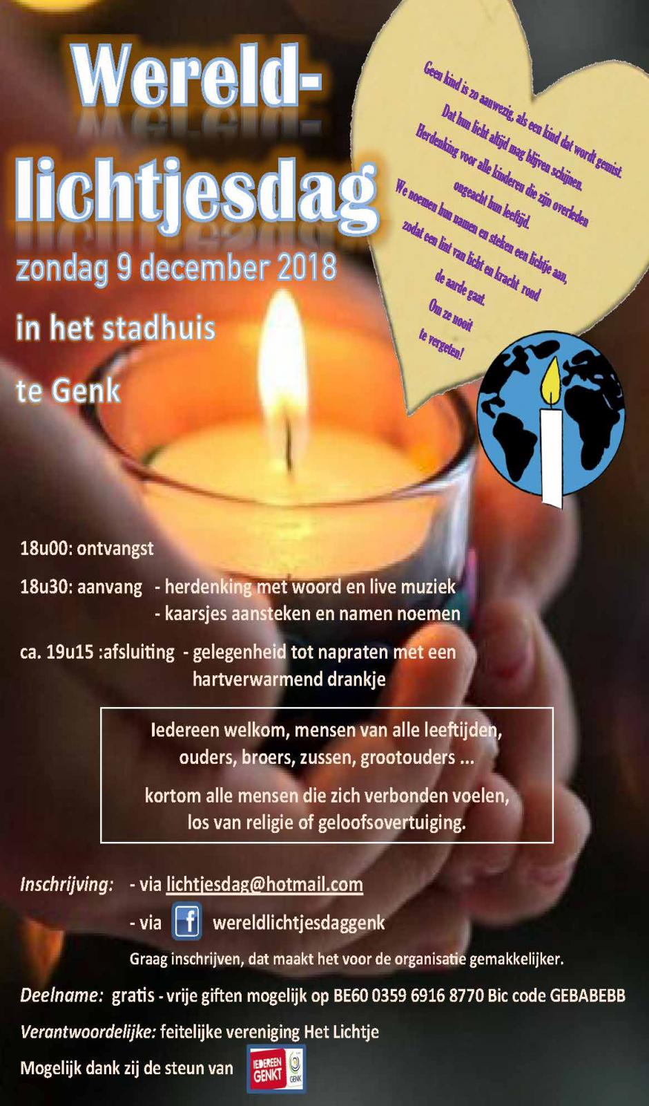 U bent van harte welkom op wereldlichtjesdag in het Stadhuis te Genk
